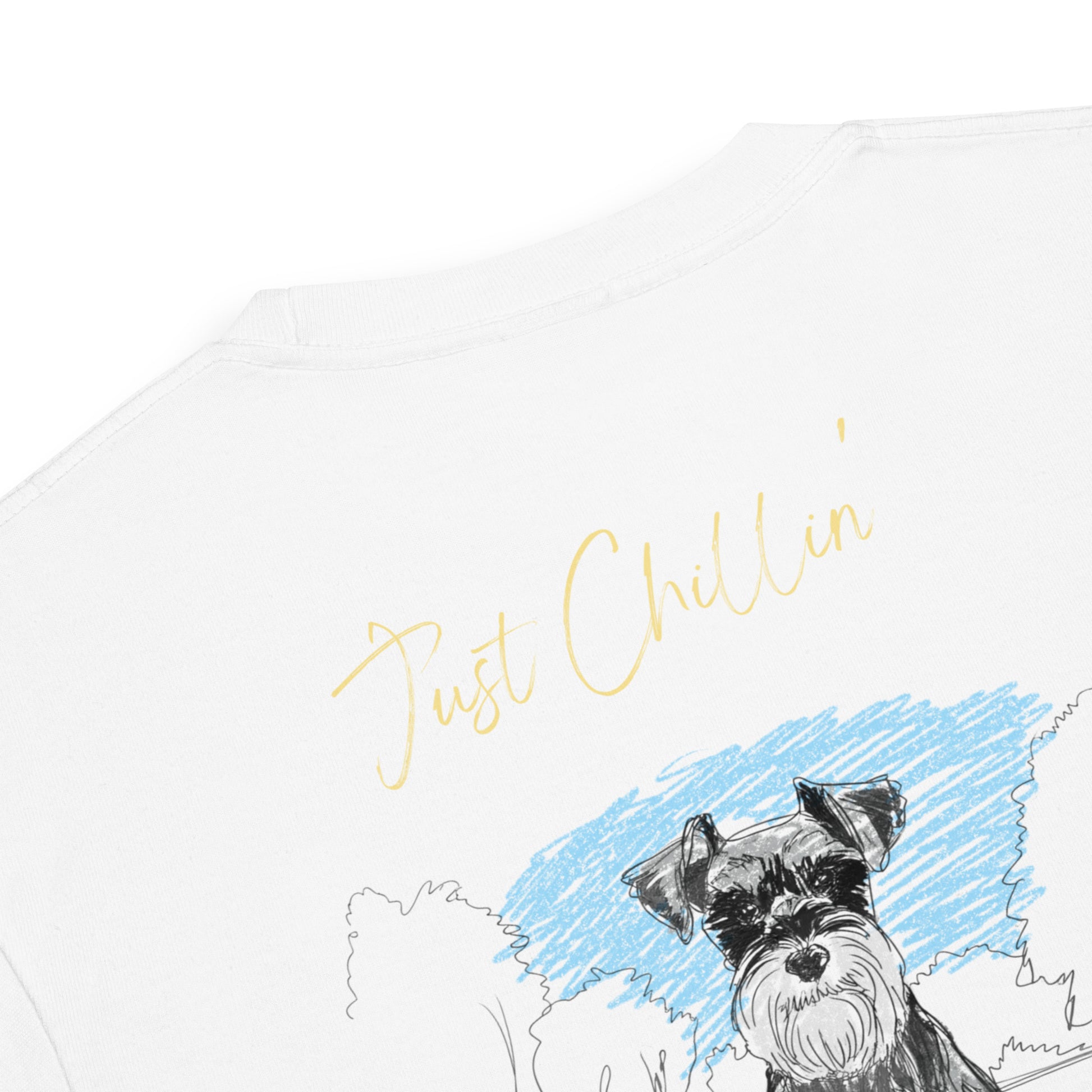 シュナウザーの休日を描いたTシャツは、ゆるっとした雰囲気が魅力。
