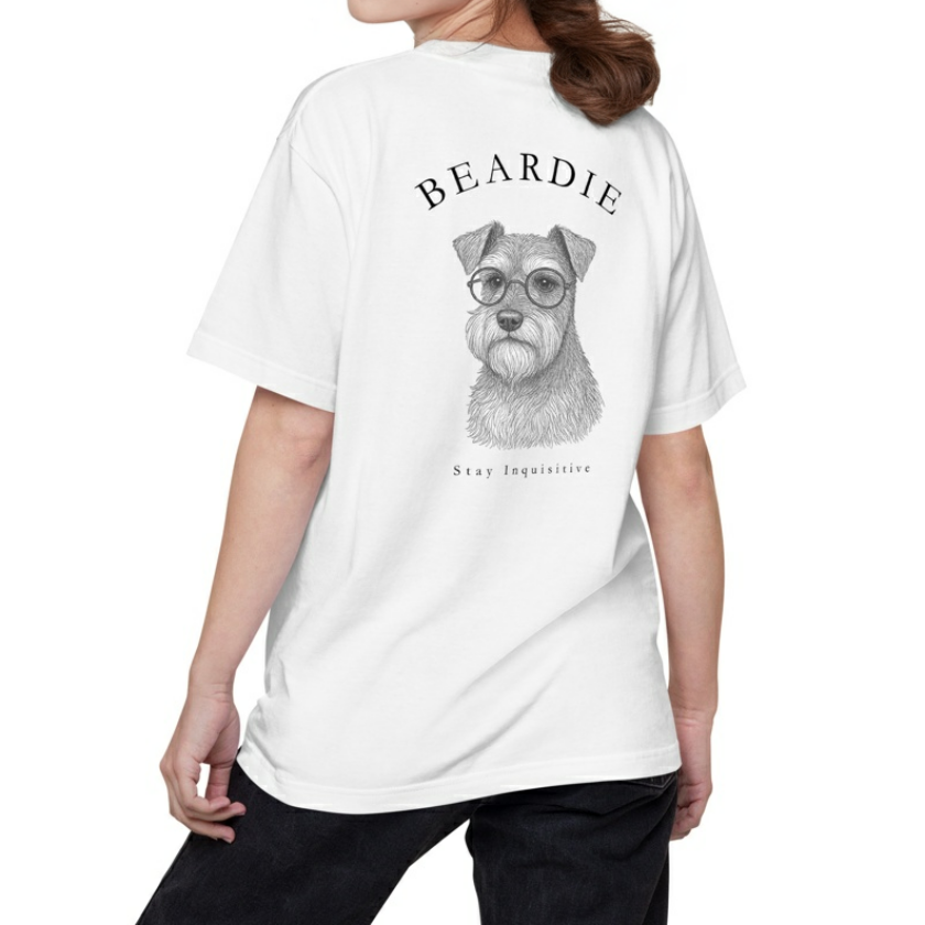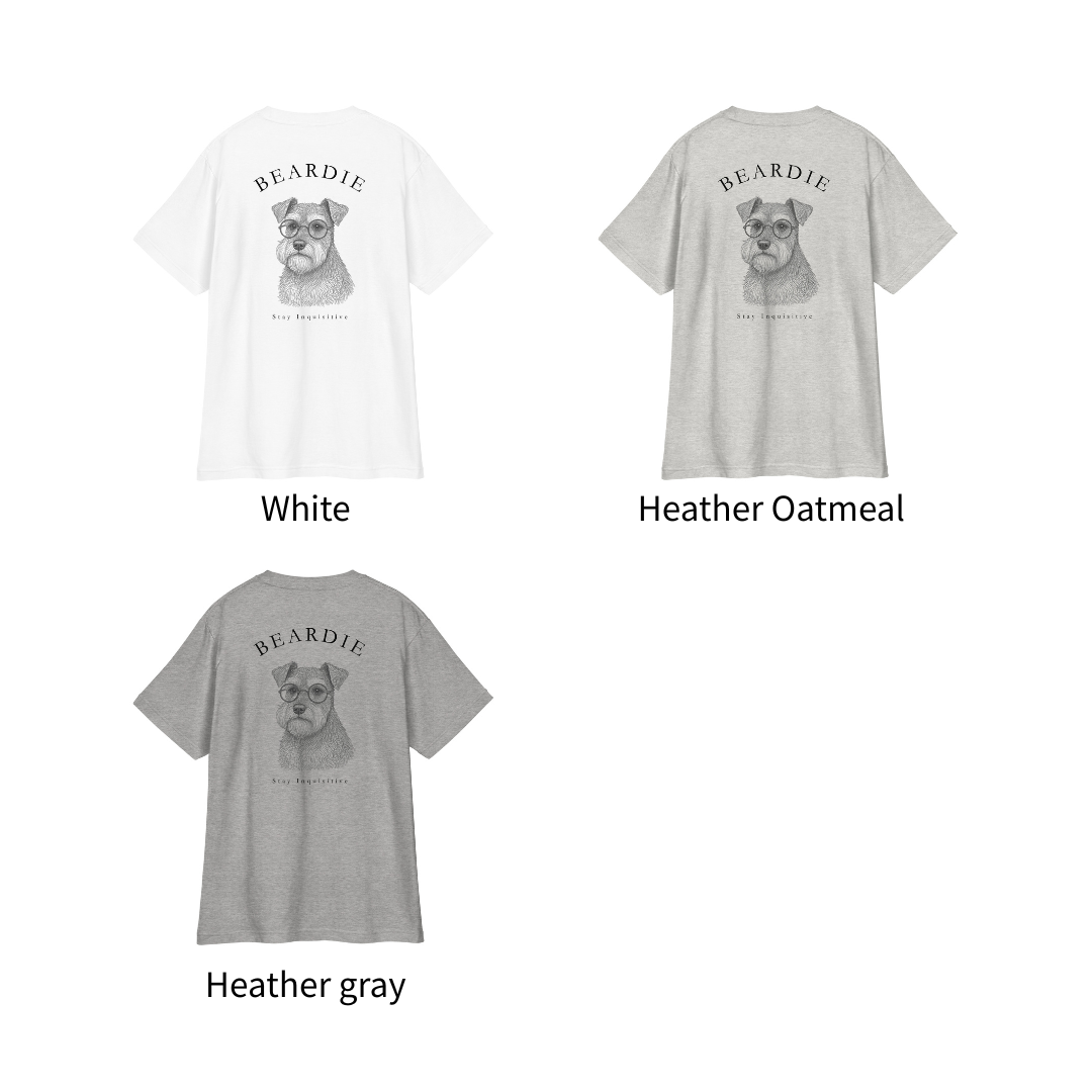 シュナウザーの眼差しに、好奇心・探究心がくすぐられるTシャツ。